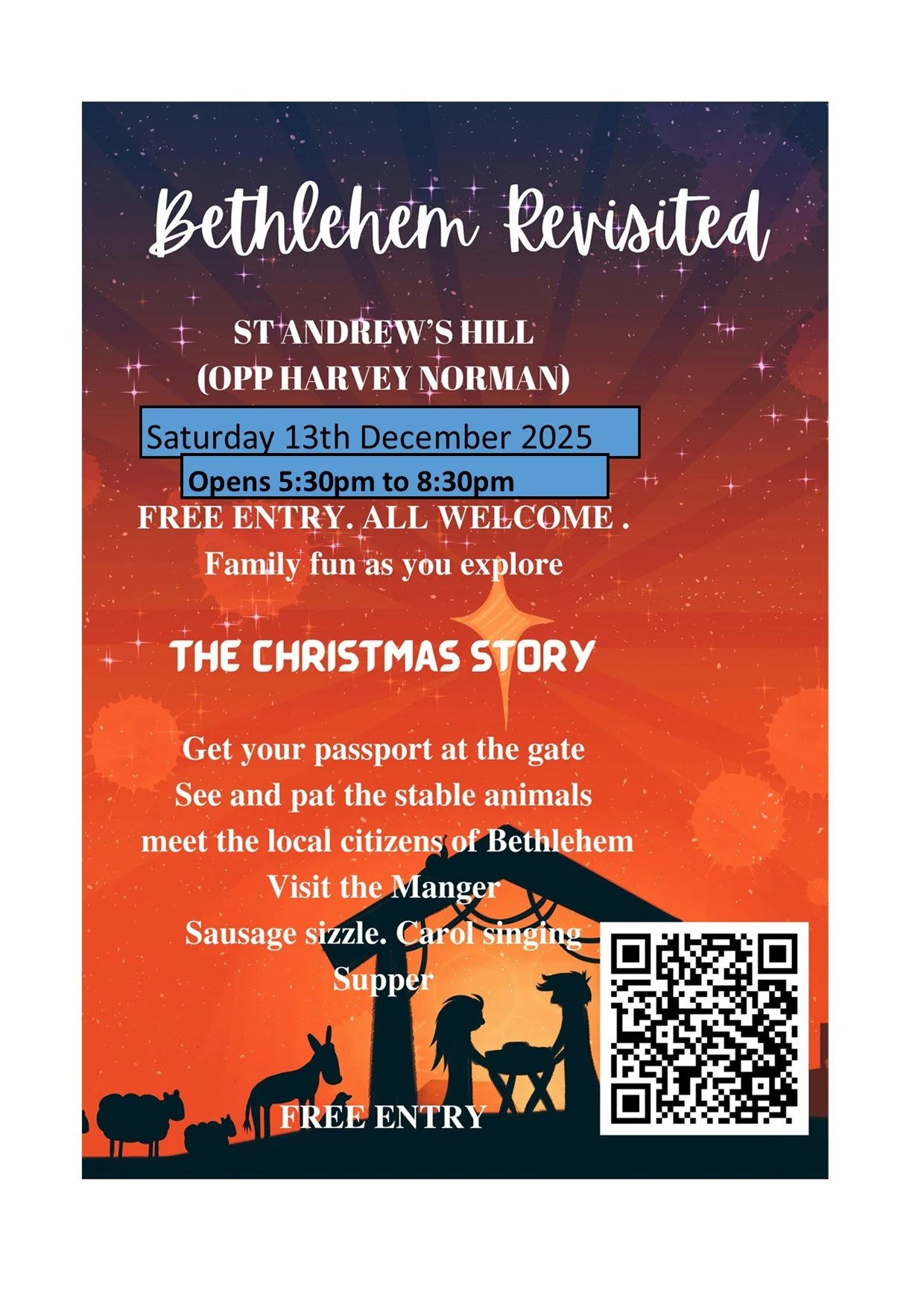 St Andrews Lismore Christmas Eve 10pm Carols and Midnight Mass followed by bubbles and Christmas Cake